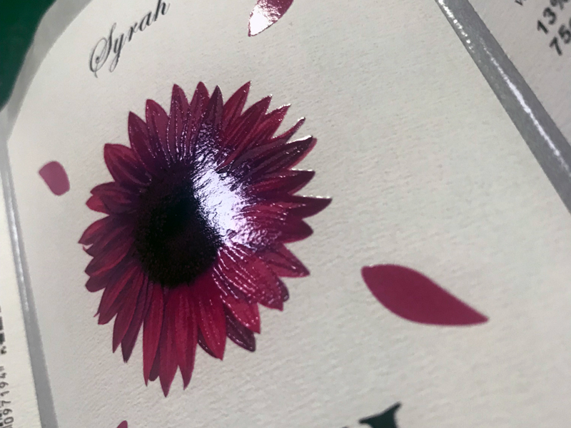 從以上這個(gè)圖像能明細(xì)看出特種紙的紋理,因此這個(gè)標(biāo)簽為特種紙不干膠標(biāo)簽,因?yàn)榇蟛糠植桓赡z材料的紋路是經(jīng)過(guò)后期工藝處理出來(lái)的產(chǎn)品。當(dāng)然我們也可以從向日葵的那個(gè)圖案中可以看到某一種工藝,這個(gè)工藝叫UV印刷,是為了突出產(chǎn)品的標(biāo)示性圖案,