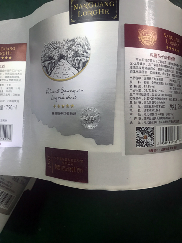 紅酒大部分都是用玻璃酒瓶裝載,因此產(chǎn)品的貼標(biāo)形式大部分是采用自動(dòng)貼標(biāo)機(jī)來(lái)貼標(biāo),因此我們印刷出來(lái)的不干膠標(biāo)簽標(biāo)貼也是得配合紅酒貼標(biāo)機(jī),也就是說(shuō)需要采用輪轉(zhuǎn)不干膠印刷機(jī)器,最后成形的也必須是卷筒不干膠