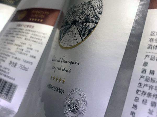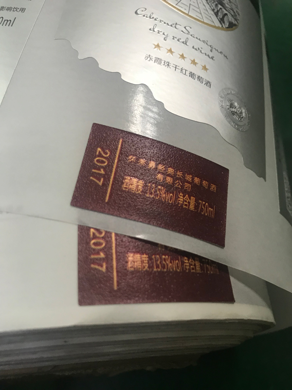 紅酒商標(biāo)如今常用的是不干膠標(biāo)簽標(biāo)貼,而用于紅酒不干膠標(biāo)簽標(biāo)貼的材料則是多種多樣,本款案例產(chǎn)品展示的則是銀箔不干膠,這種材料具有一定的金屬感,印刷處理后貼于紅酒上非常有檔次,因此是比較受紅酒商標(biāo)生產(chǎn)的歡迎。