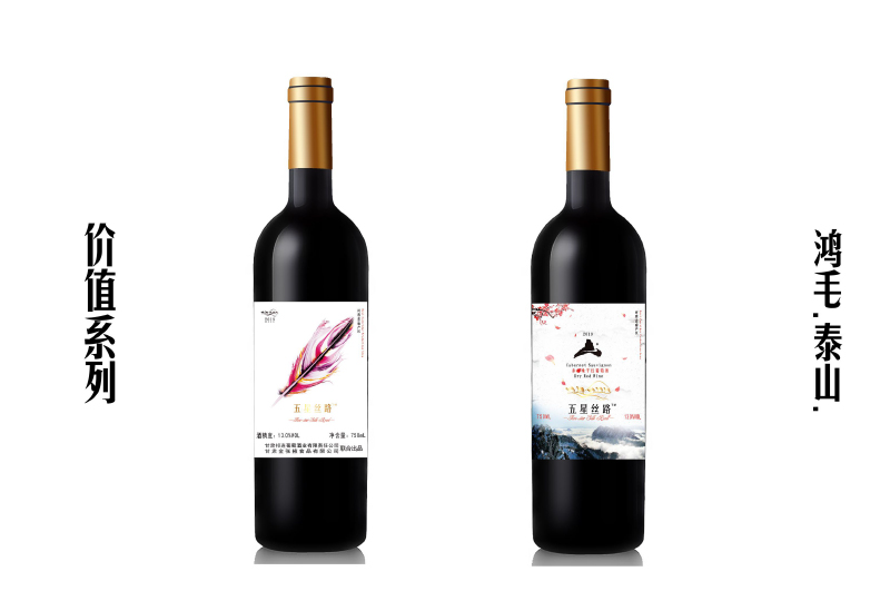 這兩款紅酒酒標(biāo)設(shè)計(jì)則是主要展現(xiàn)當(dāng)?shù)氐牡赜蛱厣偷募t酒標(biāo)簽,甘肅都有的丹霞風(fēng)貌是一大特色,而在這丹霞的美景之中醞釀出了這款紅酒,美景美酒,相得益彰。