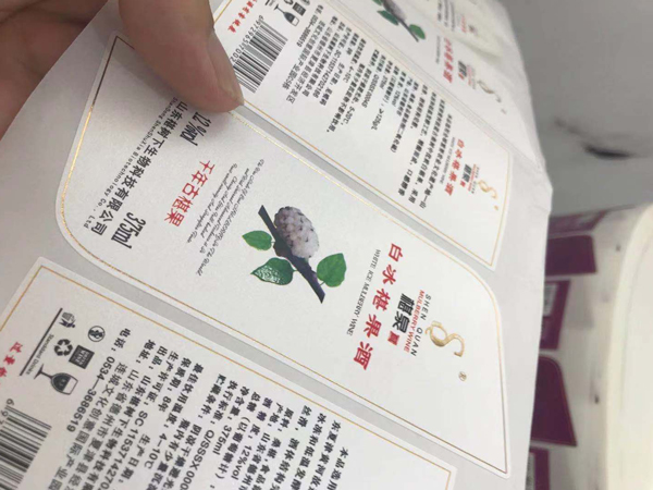 以上幾種材料的選擇對(duì)于不干膠的效果至關(guān)重要,本品采用的是珠光紙不干膠,使得產(chǎn)品商標(biāo)標(biāo)簽從視覺(jué)上有珠光效果,讓產(chǎn)品變得更加彌足珍貴,比傳統(tǒng)上采用的銅版紙不干膠更有質(zhì)感。材料的選取是依據(jù)我們的設(shè)計(jì)效果來(lái)具體而定的。